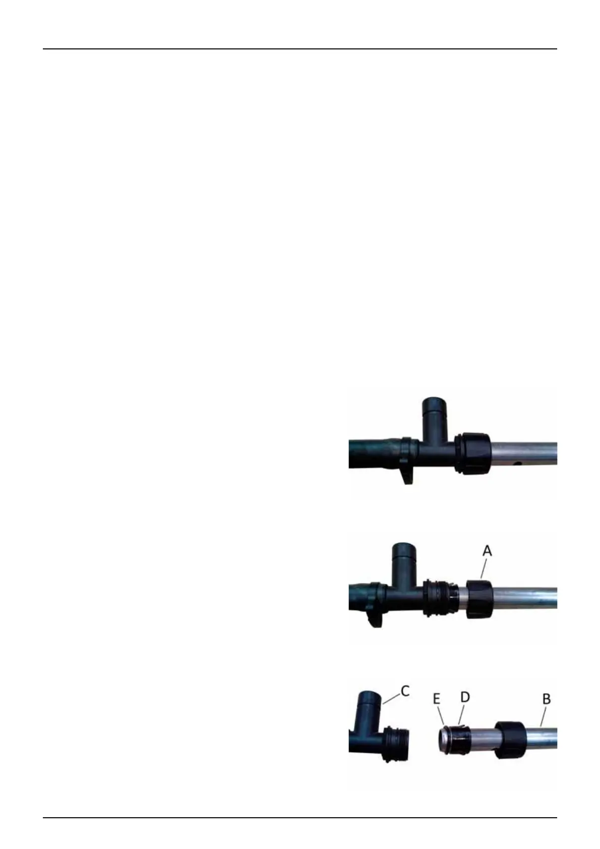 A lock ring (D) and an O-ring (E) is located at the end of the pipe.