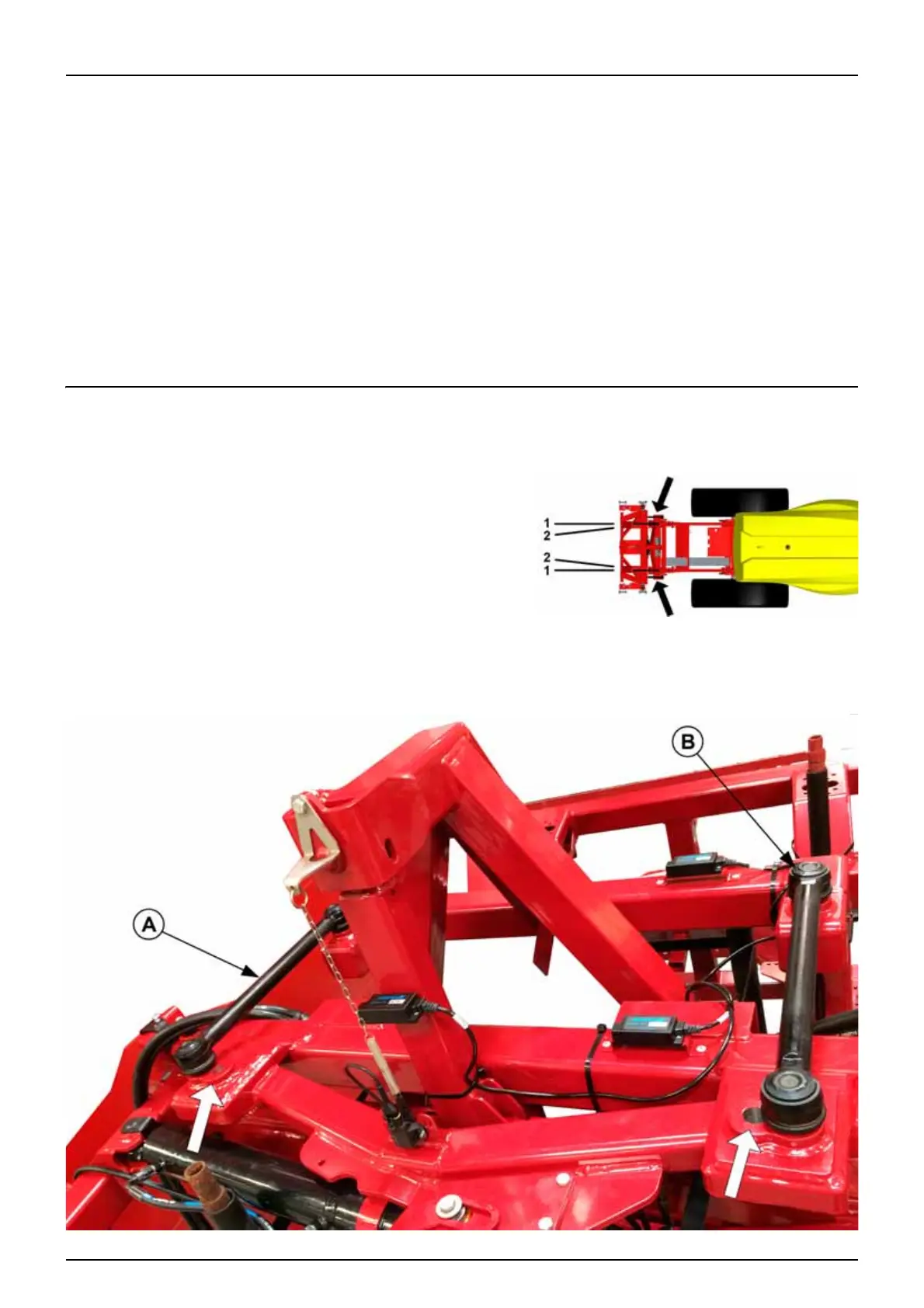 After adjusting the springs, the guide rods (A and B) can be moved to another position to make the boom follow the wheel
