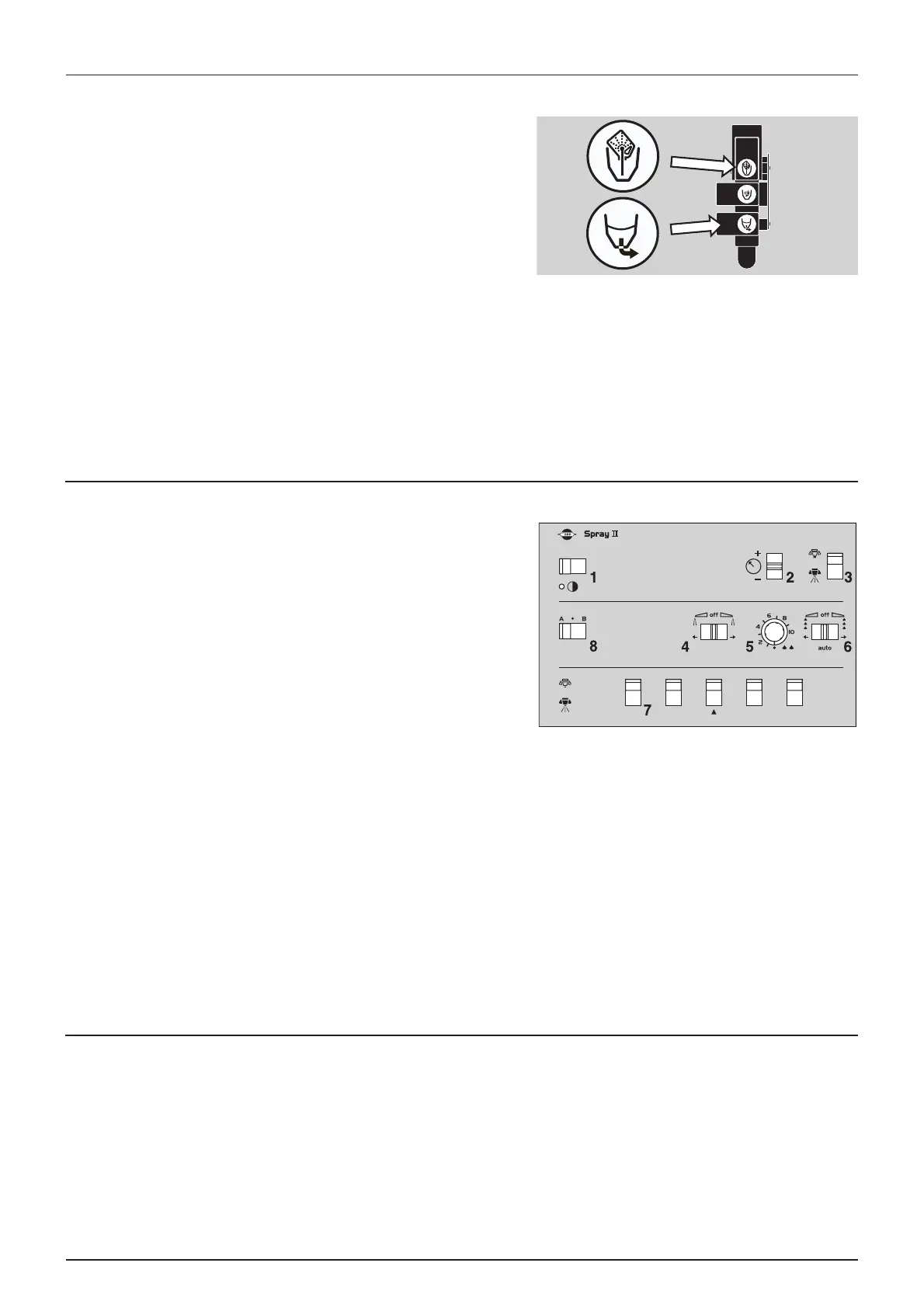 The switches of the spray control unit control the following functions: