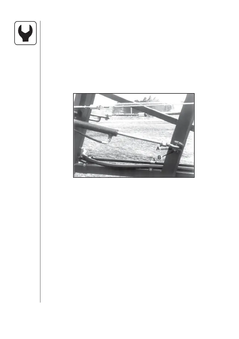 5. Loosen jam nut (A) and adjust rod eye (B) IN to move boom forward