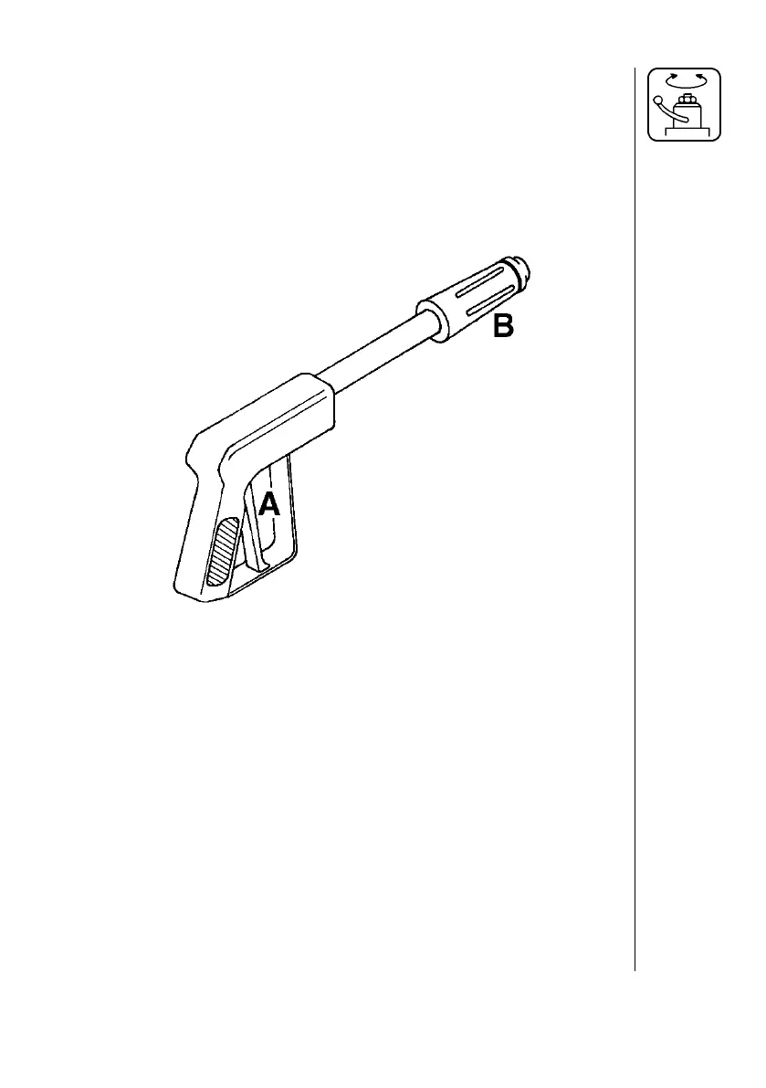 9. To adjust the spray pattern, turn the black handle B (Fig. 16) OUT for