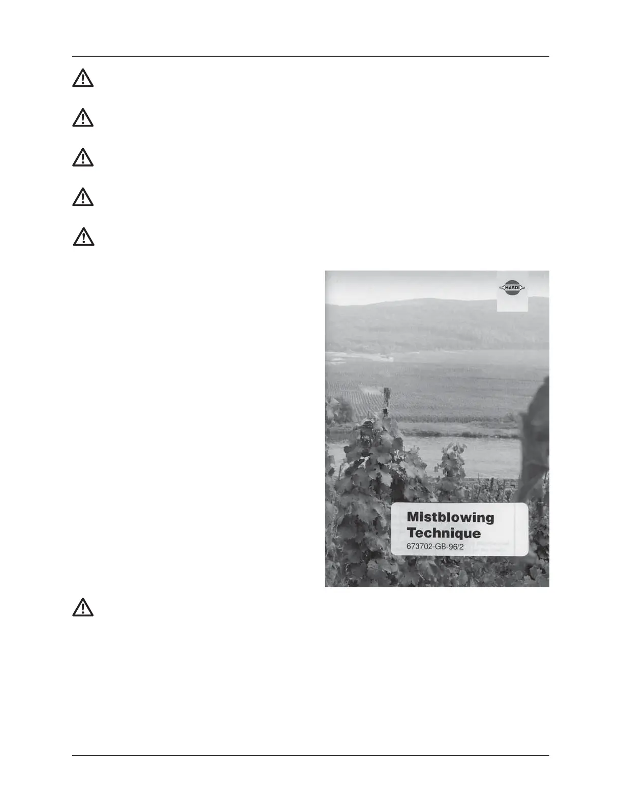 If any portion of this instruction book remains unclear after reading it, contact your HARDI® dealer for further