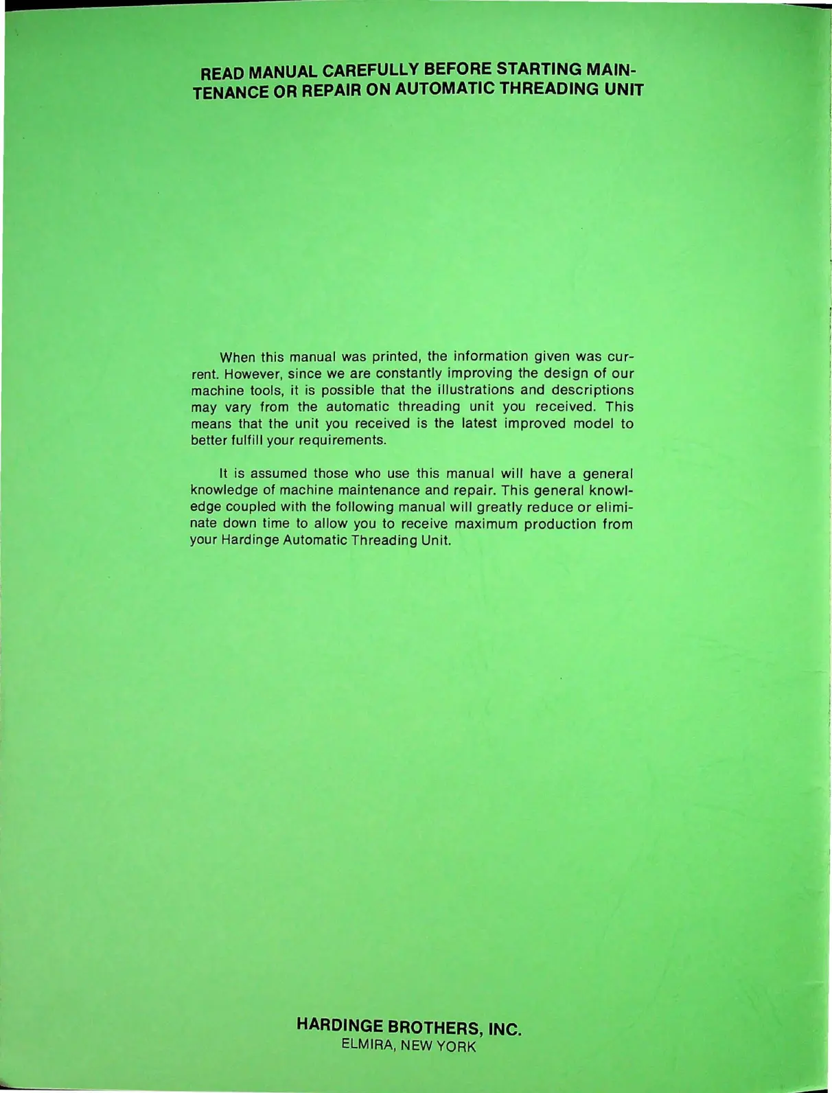 your Hardinge Automatic Threading Unit.