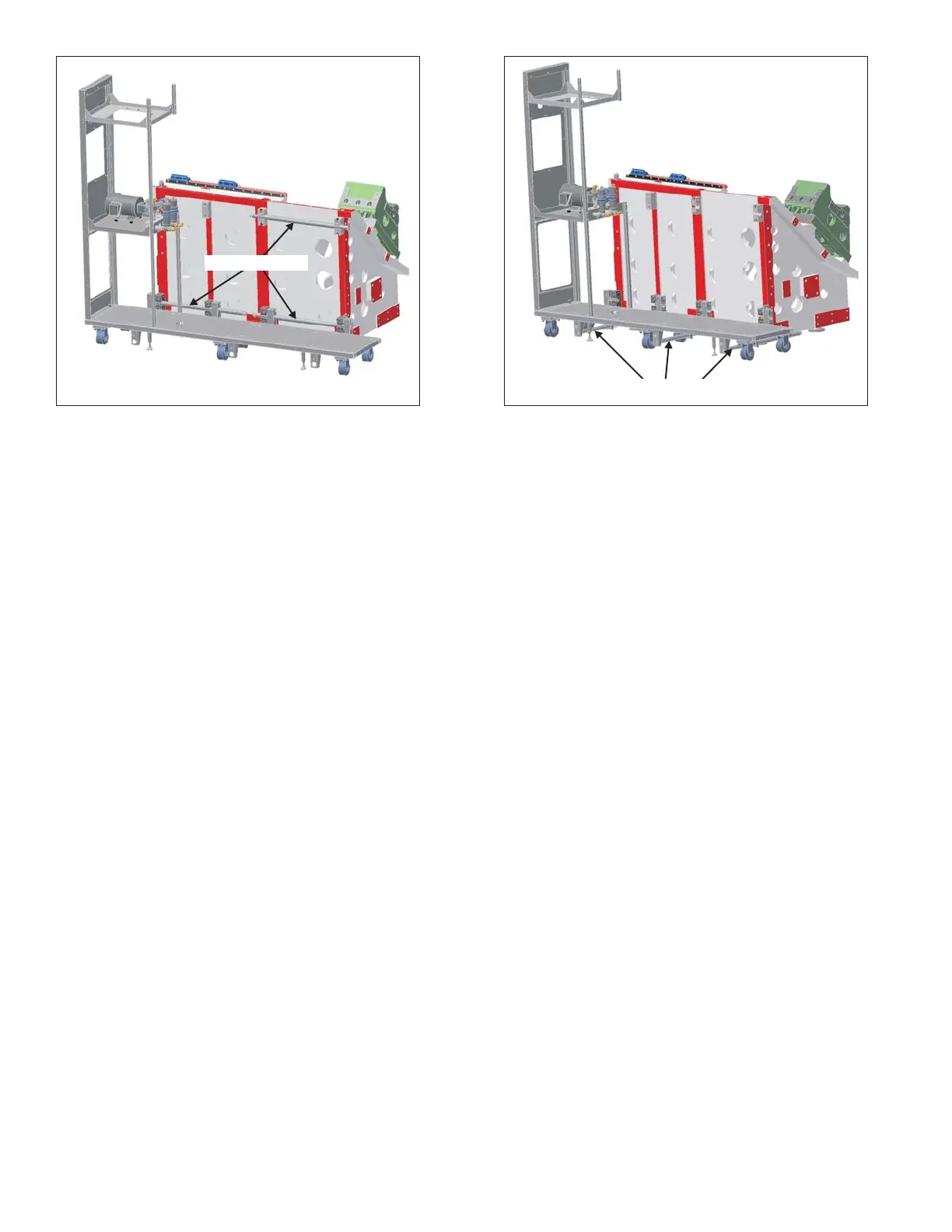 6. Remove the shipping tubes to disconnect the power case platform from the machine. Refer to