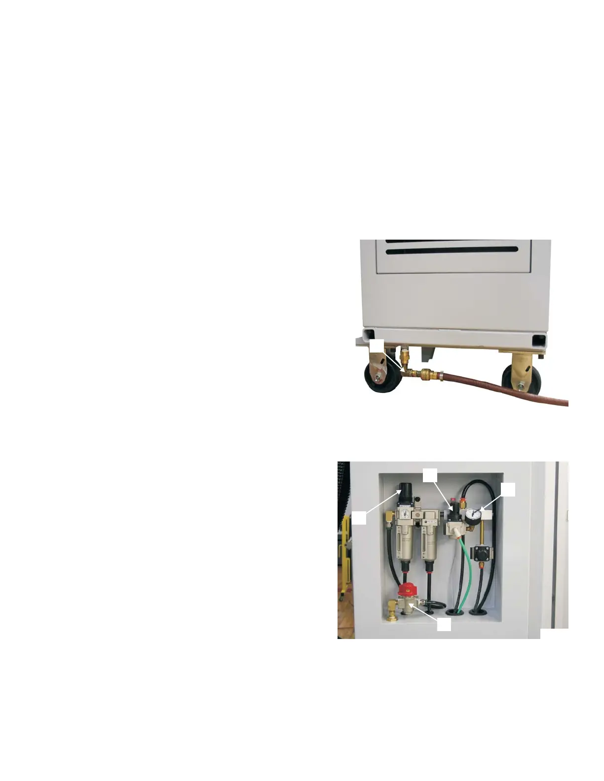 Connect the air supply to nipple "R", Figure 1.29, located on the bottom of the power case platform.