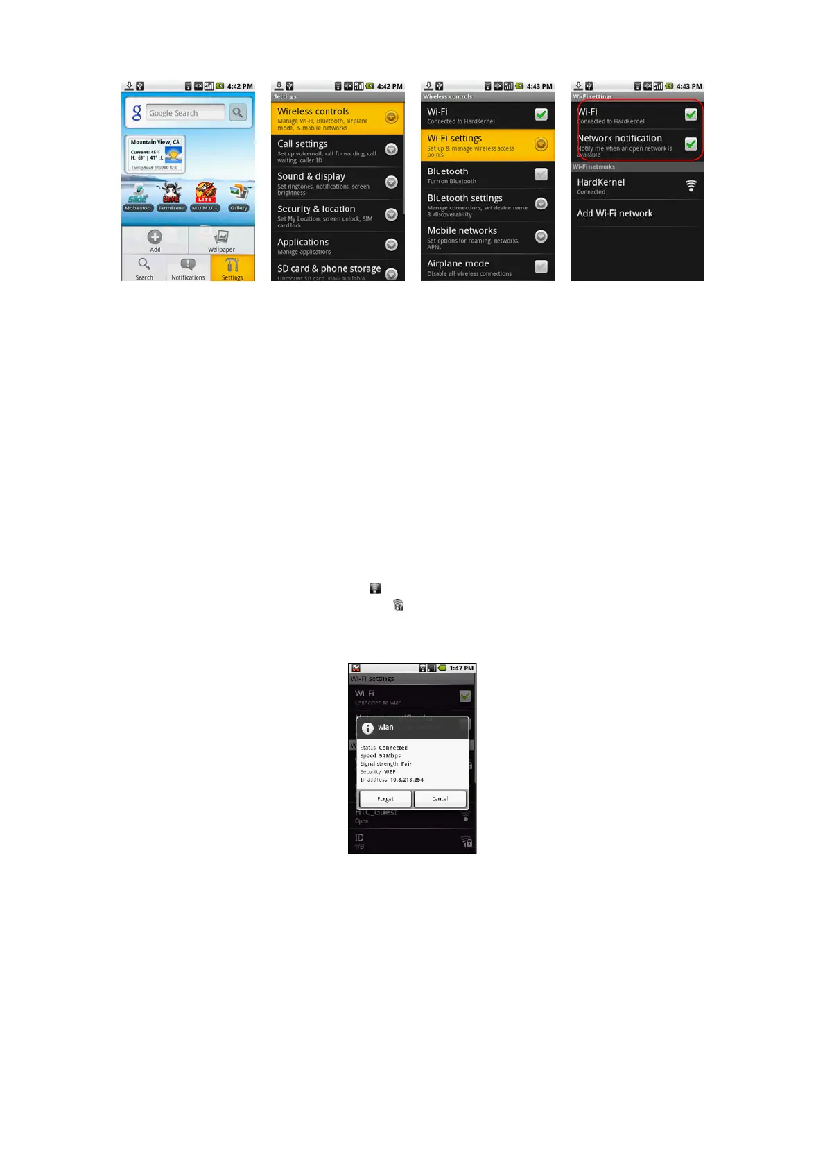 Wi-Fi networks section. Touch a Wi-Fi network to connect. When you selected an open network, you will be automatically connected to the network. If you