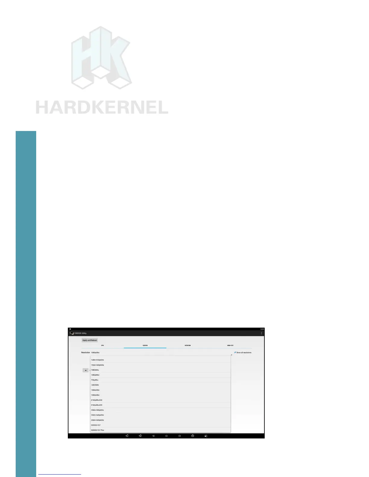 Conguring HDMI resolution with the Android ODROID Utility app