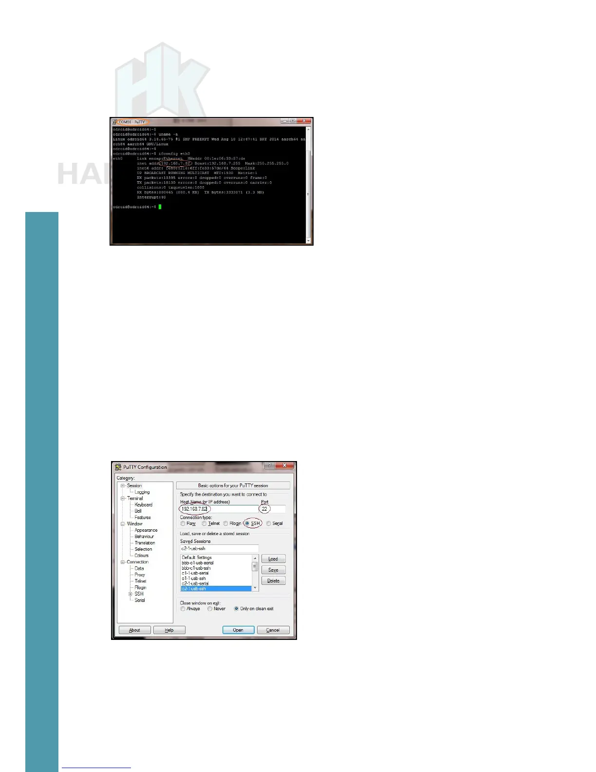 Enter the ODROID-C2’s IP address or hostname (if it can be re-