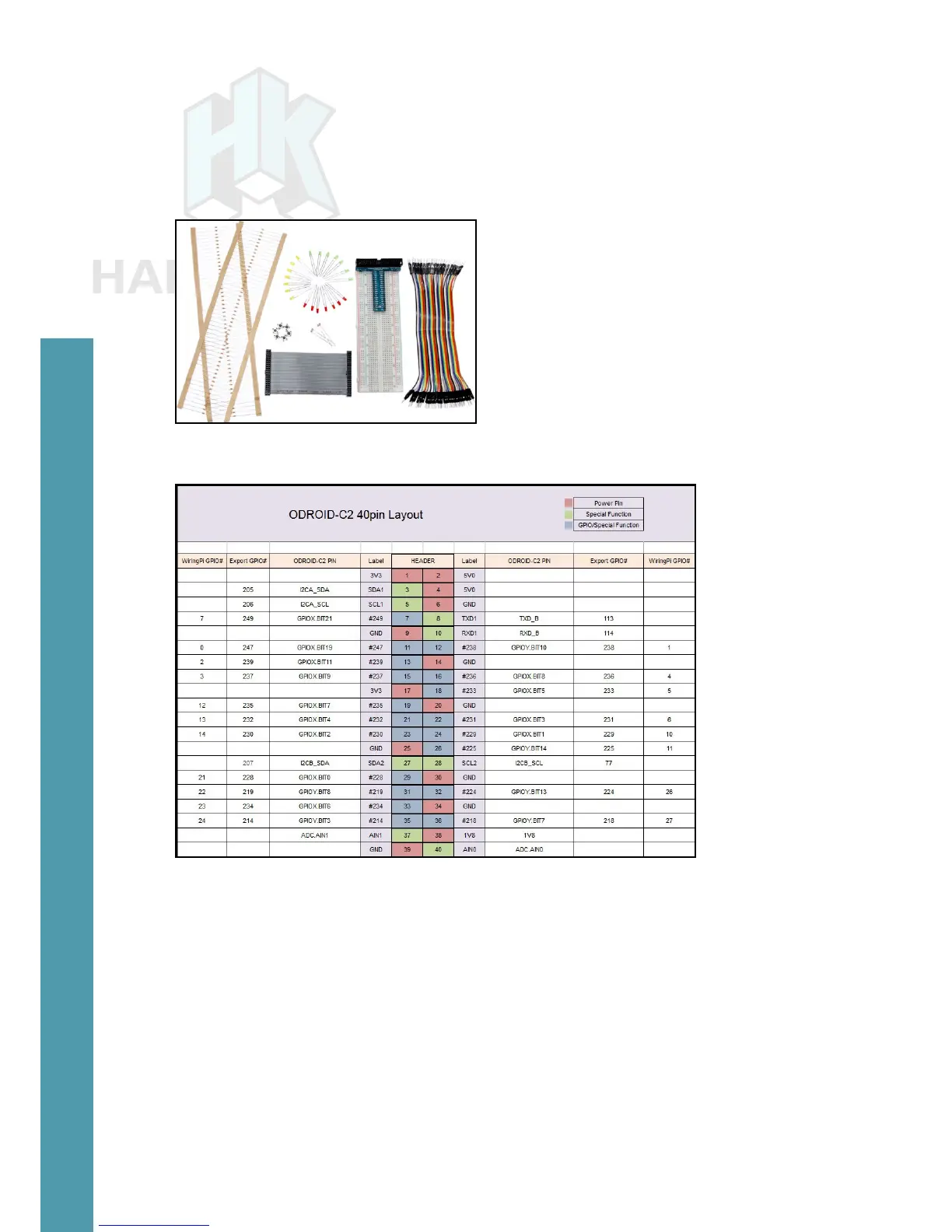 GPIO layout for the 40-pin header on the ODROID-C2