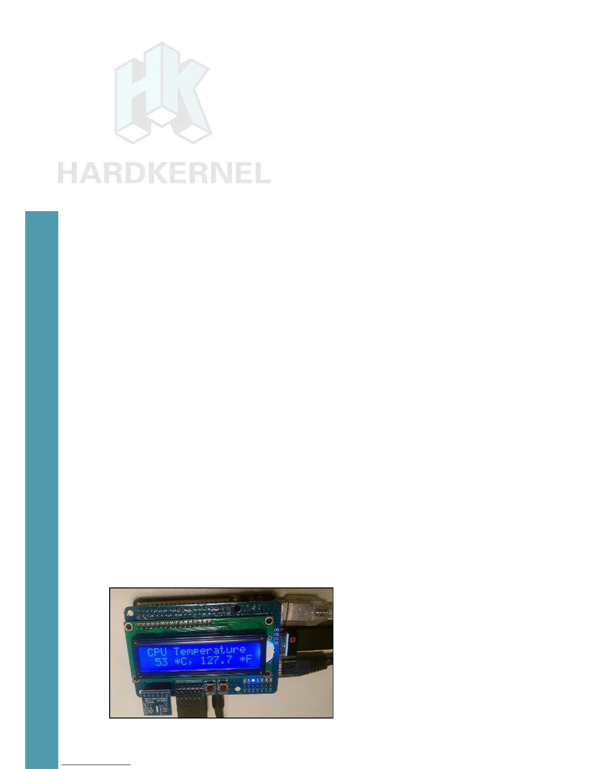 Hardkernel offers an I/O shield with a, 16 chars by 2 lines, white