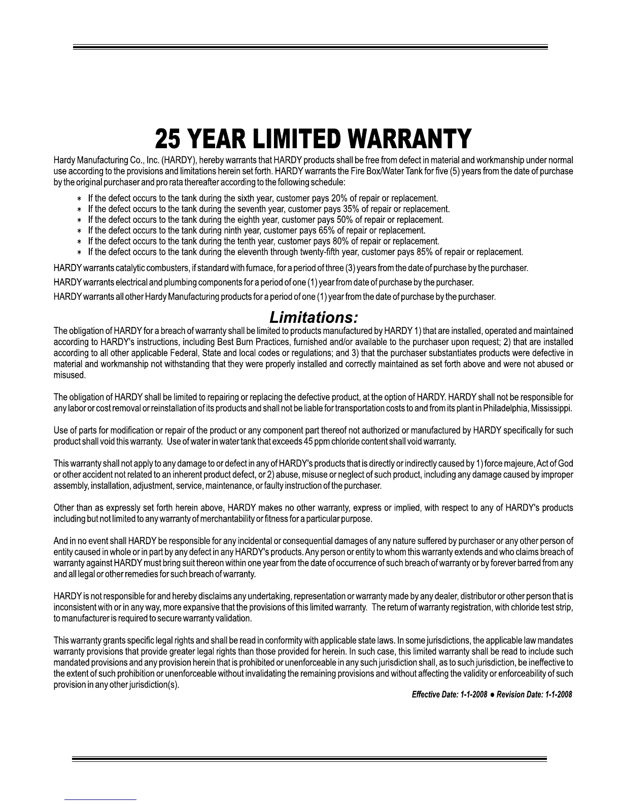 Hardy H25 - 25 Year Limited Warranty