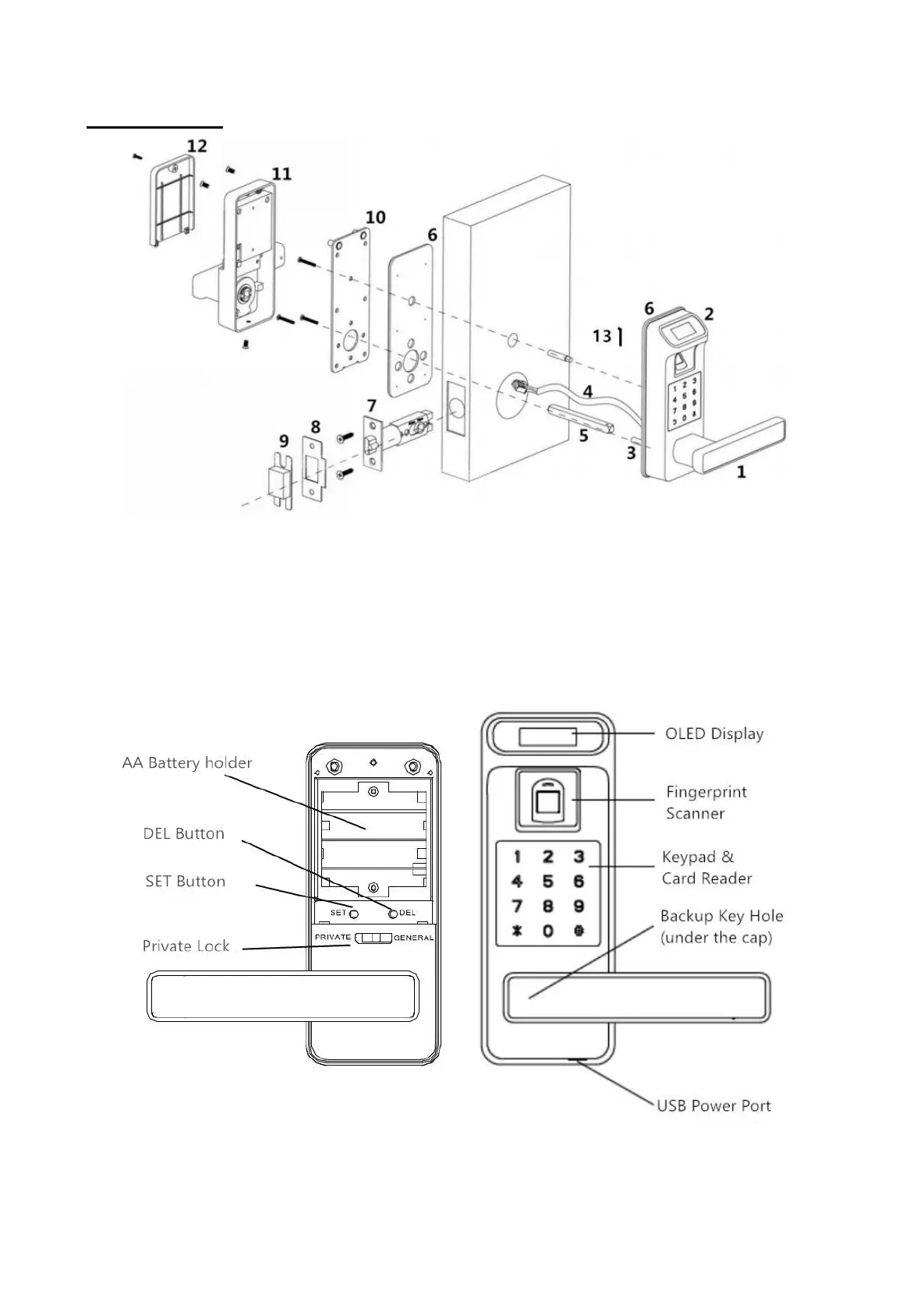 1. Outer Handle 2. Outer Lock 3. Screws Pillar 4. Data Wire