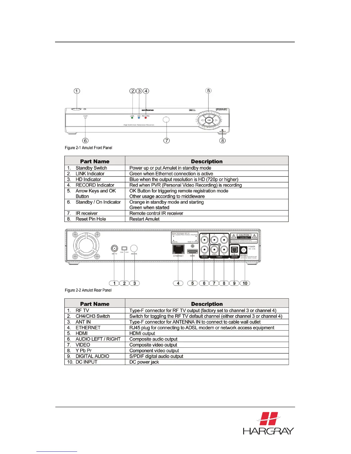 Hargray DVR - Front Panel & Rear Panel