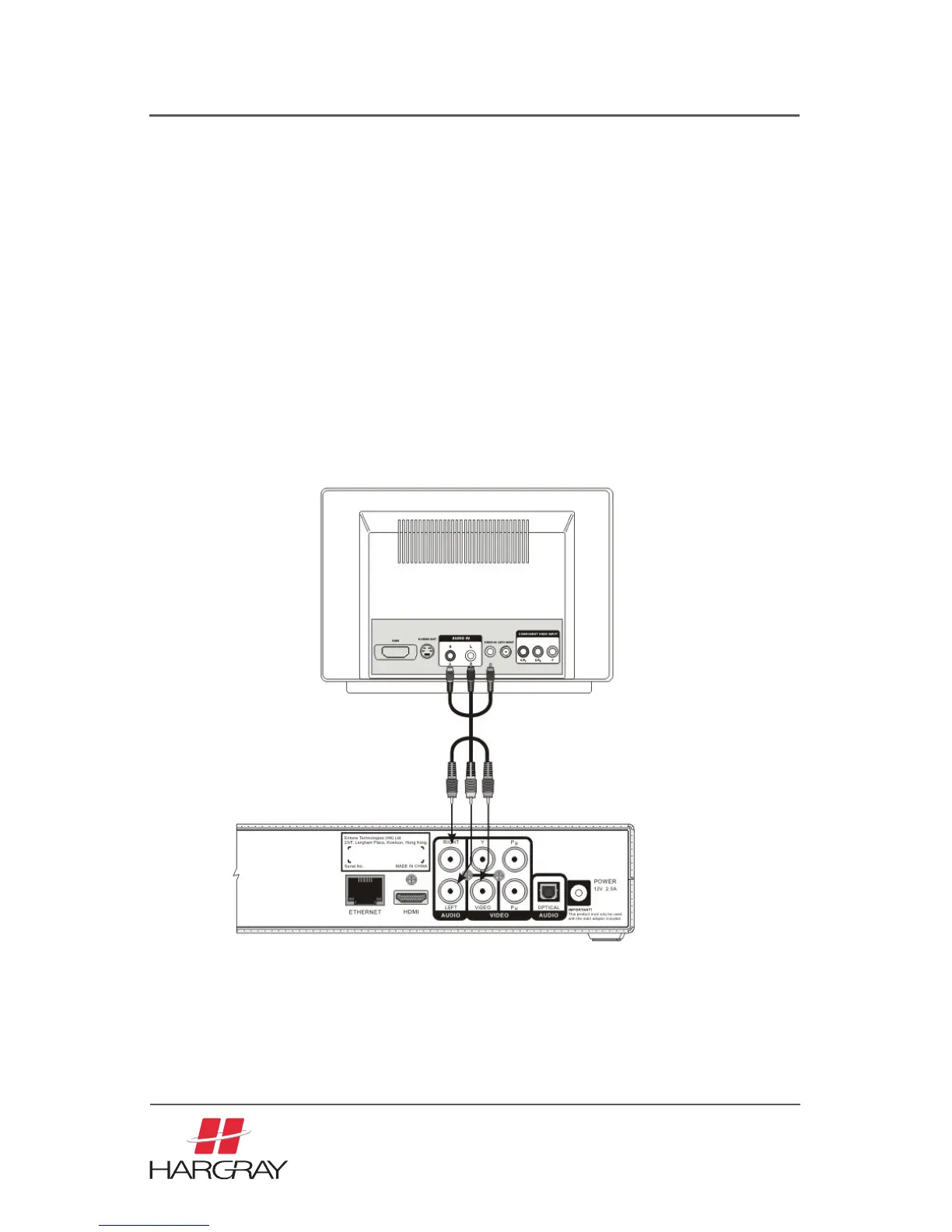 3. Connect the opposite end of the video and audio cables to the matching input