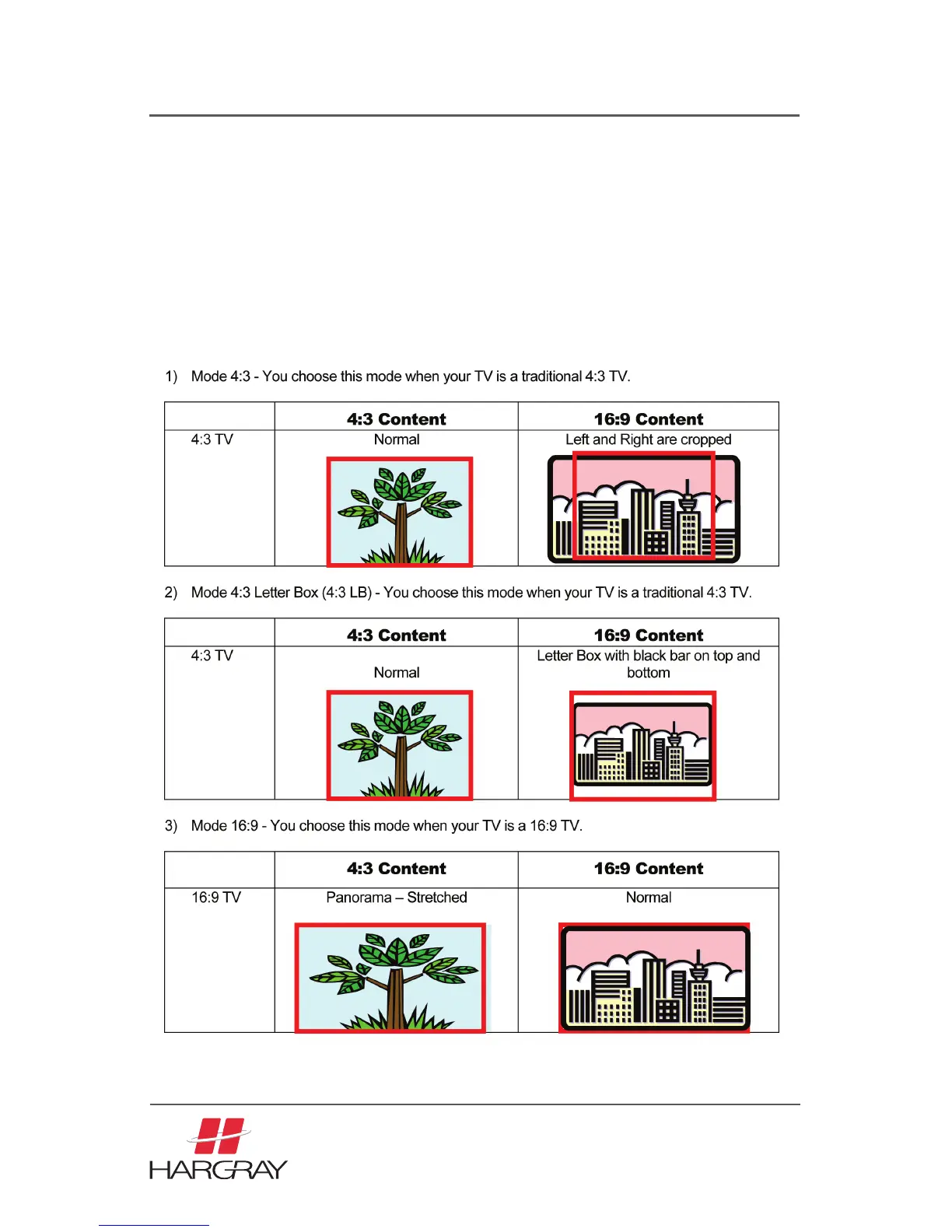 Setting of aspect ratio is found in the Menu. Please refer to Hargray for options avail-