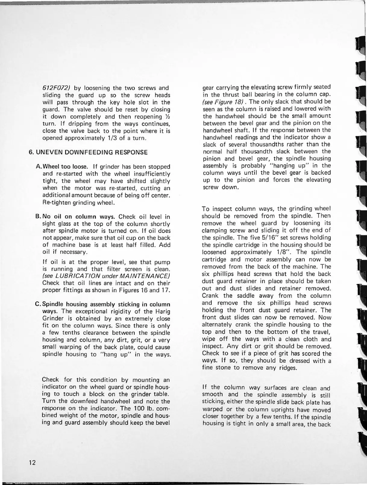 inspect column ways, the grinding wheel