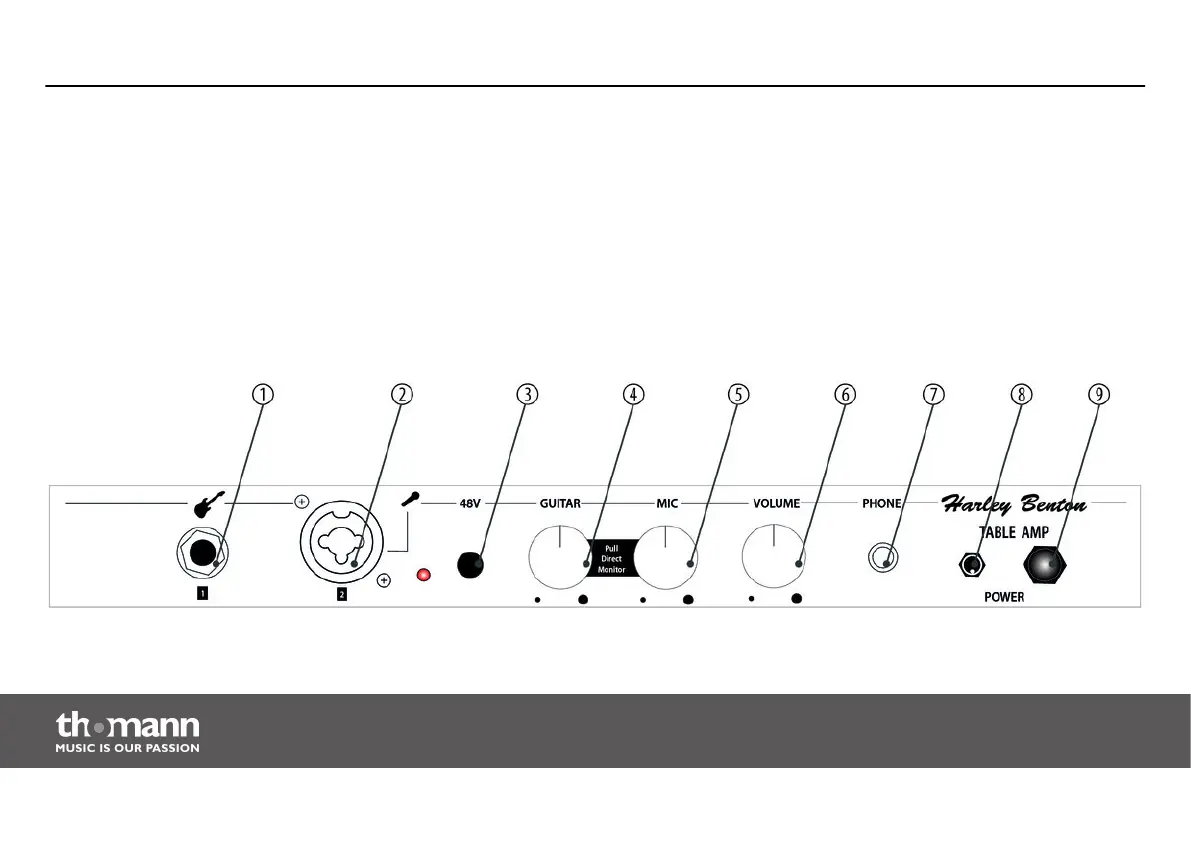 Harley Benton Table Amp - Components and Functions; Front Panel Overview and Controls