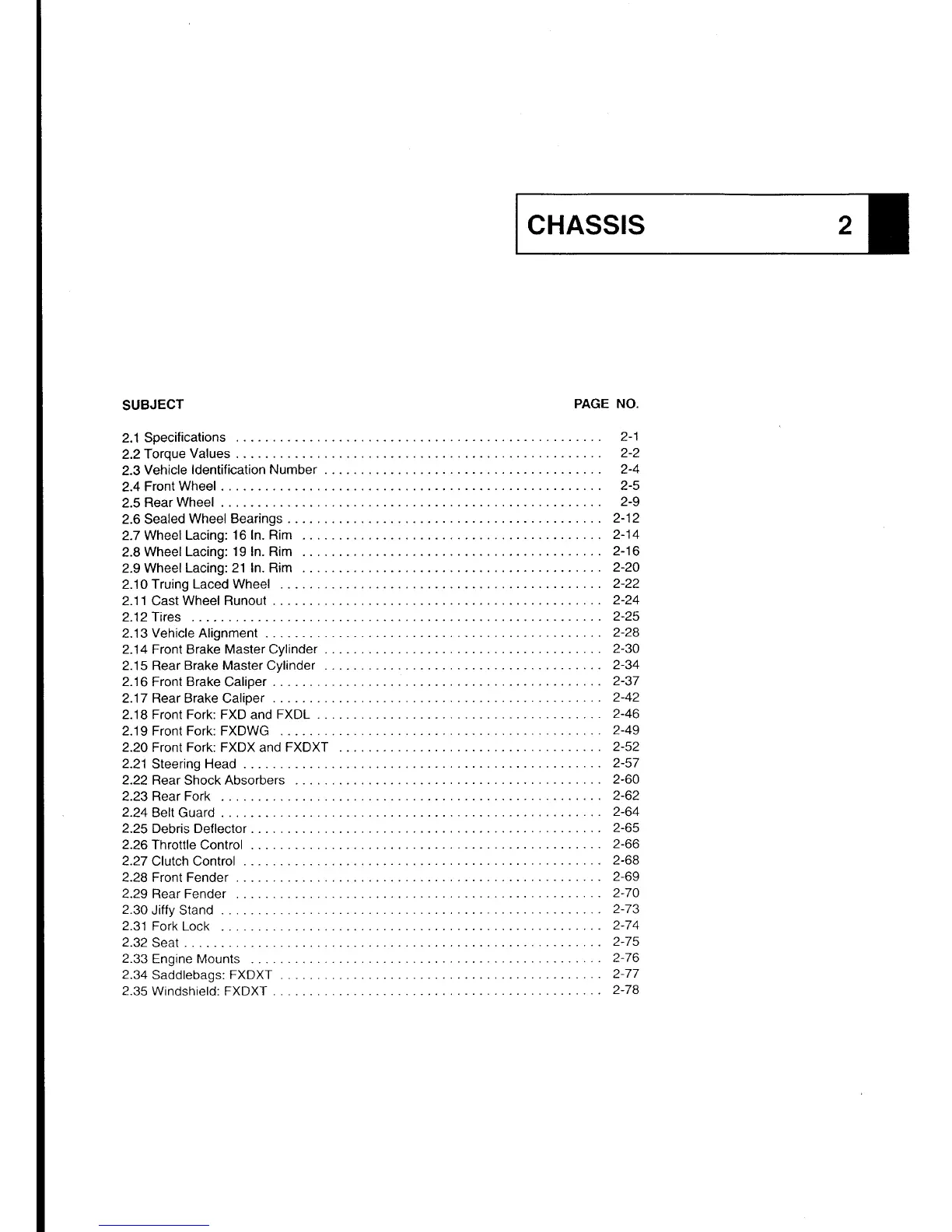 Harley-Davidson 2003 Dyna - Section 2: Chassis; 2.1 Specifications