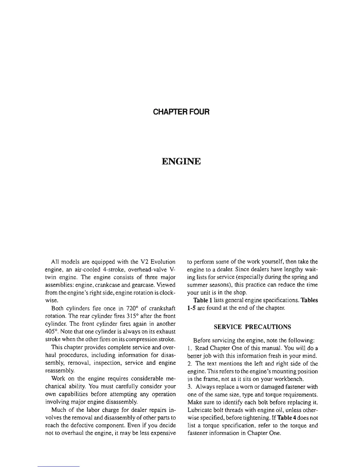 Harley-Davidson Dyna Glide - Chapter Four Engine Service; Engine Service Precautions