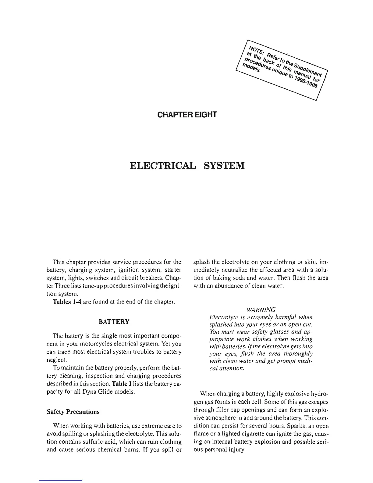 Harley-Davidson Dyna Glide - Chapter Eight Electrical System; Battery Service
