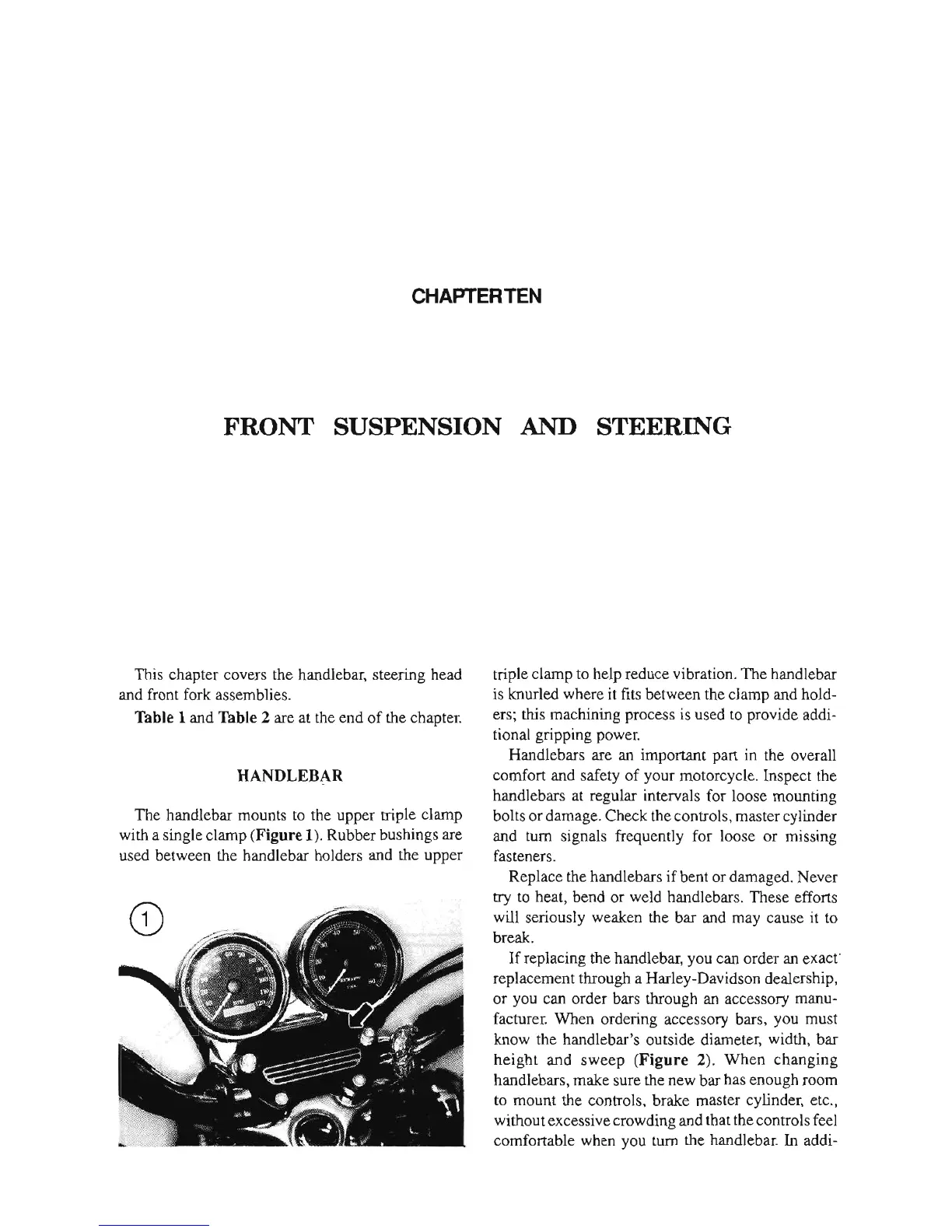 Harley-Davidson Dyna Glide - Chapter Ten Front Suspension and Steering; Handlebar Service