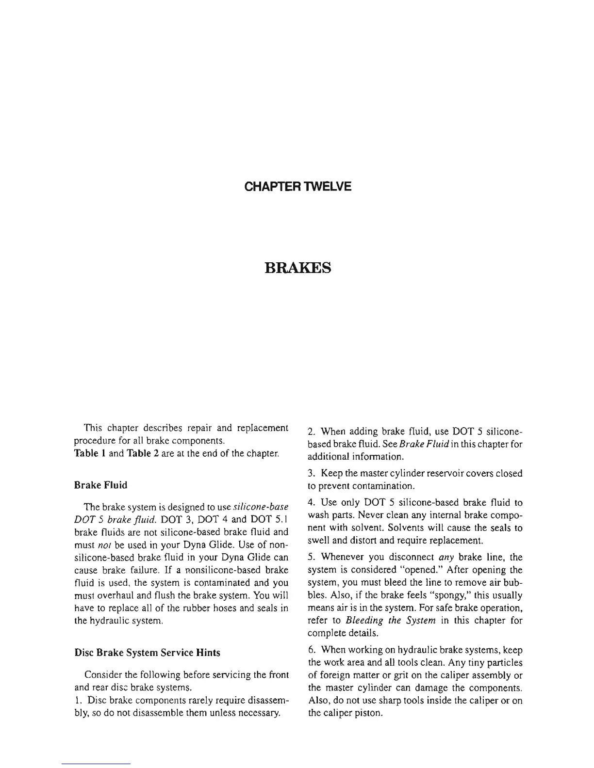 Harley-Davidson Dyna Glide - Chapter Twelve Brakes; Front Brake System Service; Brake Fluid and Bleeding