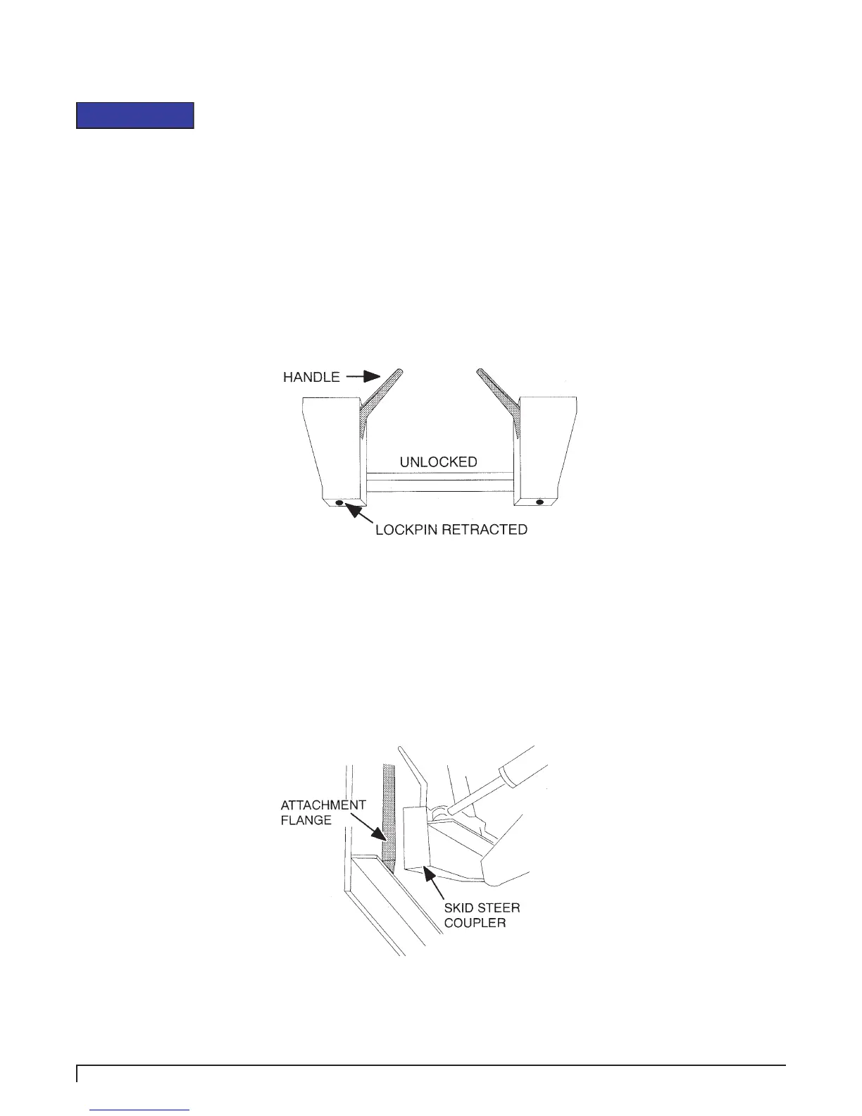 The skid-steer coupler handles should be in the unlocked position and the lockpins retracted.
