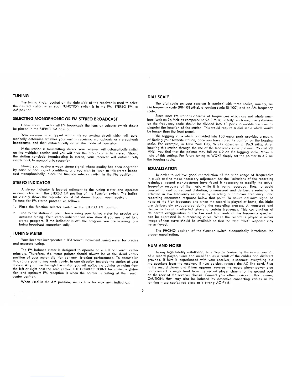 Harman Kardon 75 - Tuning; Selecting Monophonic or FM Stereo Broadcast; Stereo Indicator; Tuning Meter
