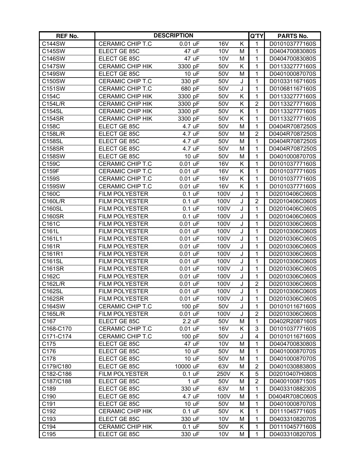 C171-C174 CERAMIC CHIP T.C 100 pF 50V J 4 D010101167160S