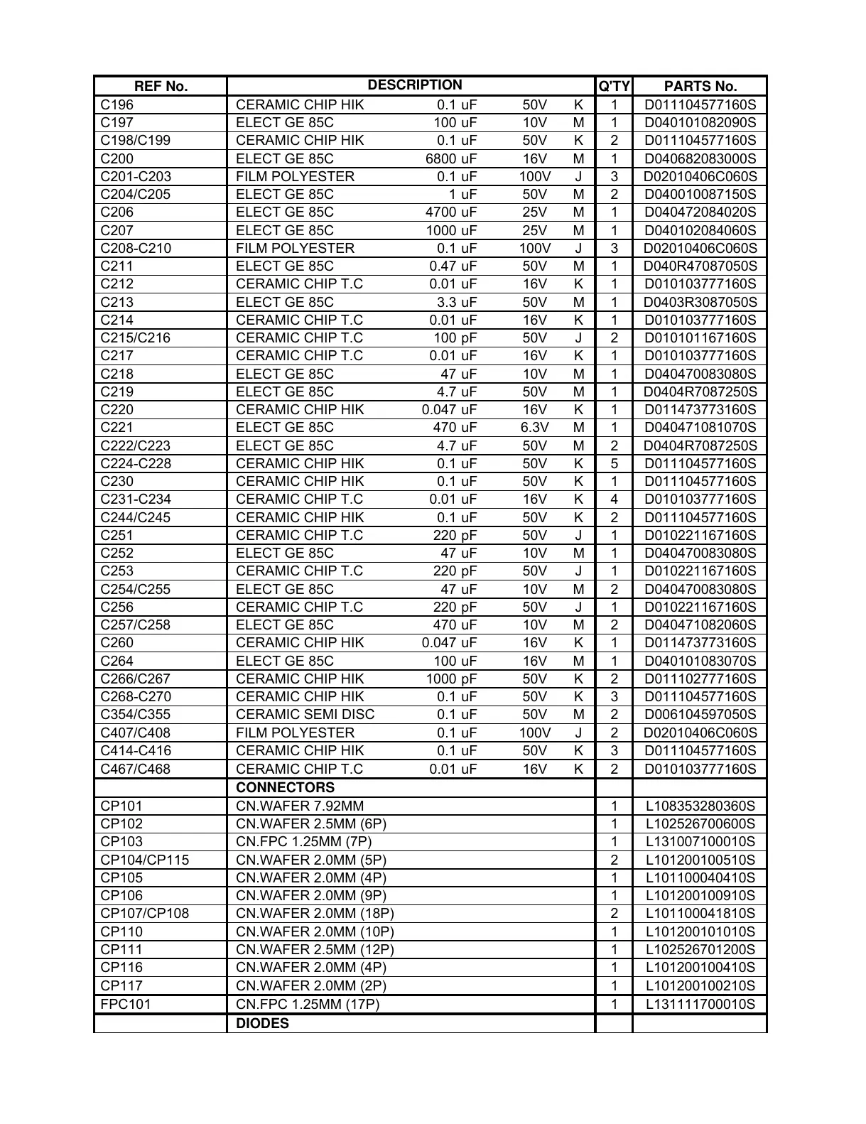 C198/C199 CERAMIC CHIP HIK 0.1 uF 50V K 2 D011104577160S
