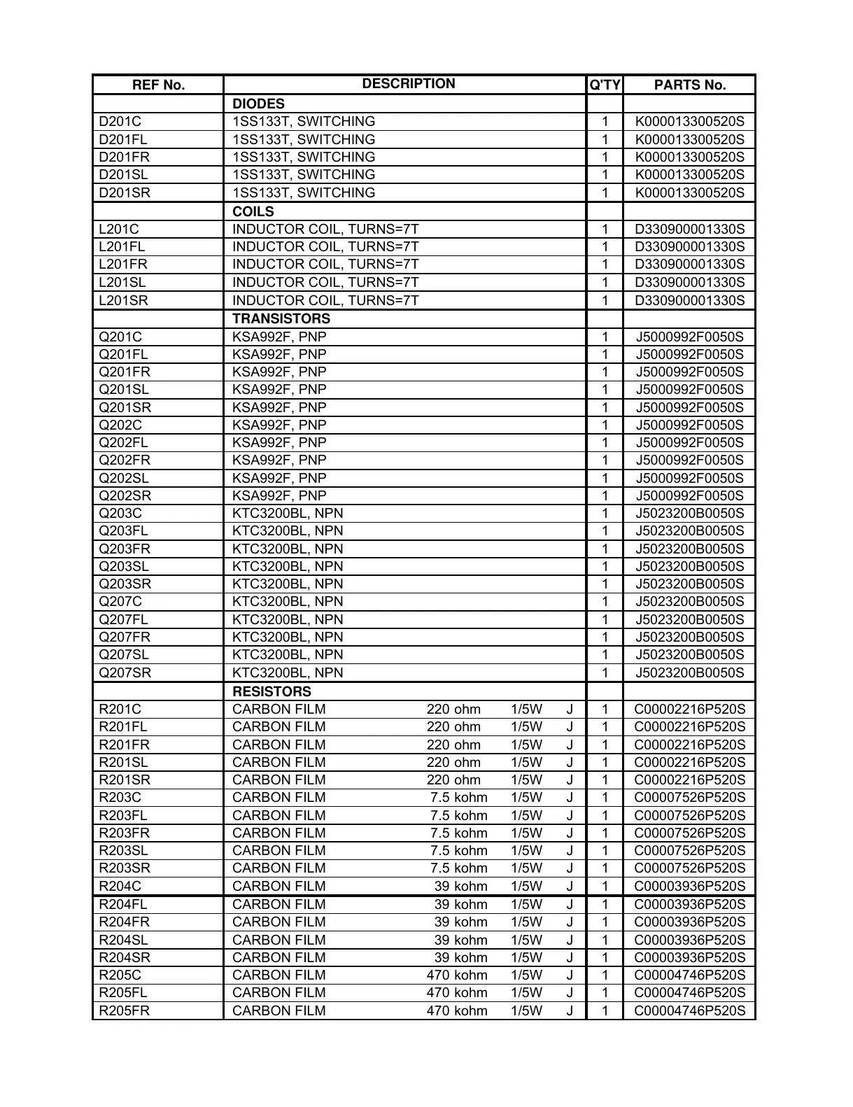 R201C CARBON FILM 220 ohm 1/5W J 1 C00002216P520S
