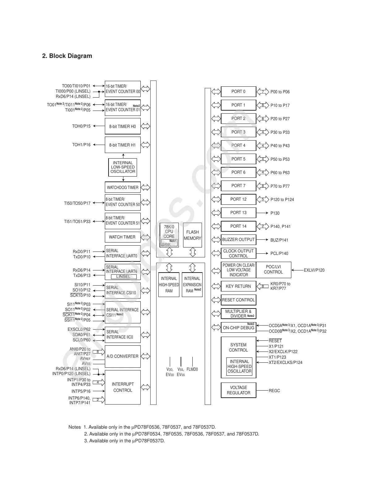 2. Available only in the μPD78F0534, 78F0535, 78F0536, 78F0537, and 78F0537D.