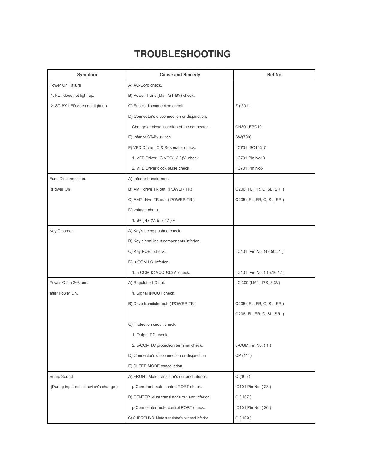 1. µ-COM IC VCC +3.3V check. I.C101 Pin No. ( 15,16,47 )