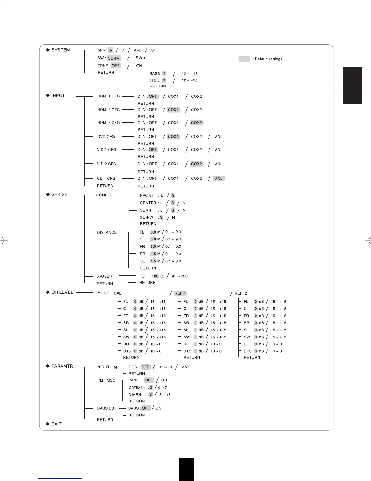 • When "RETURN" is selected in a sub-menu, it returns to the previous menu.