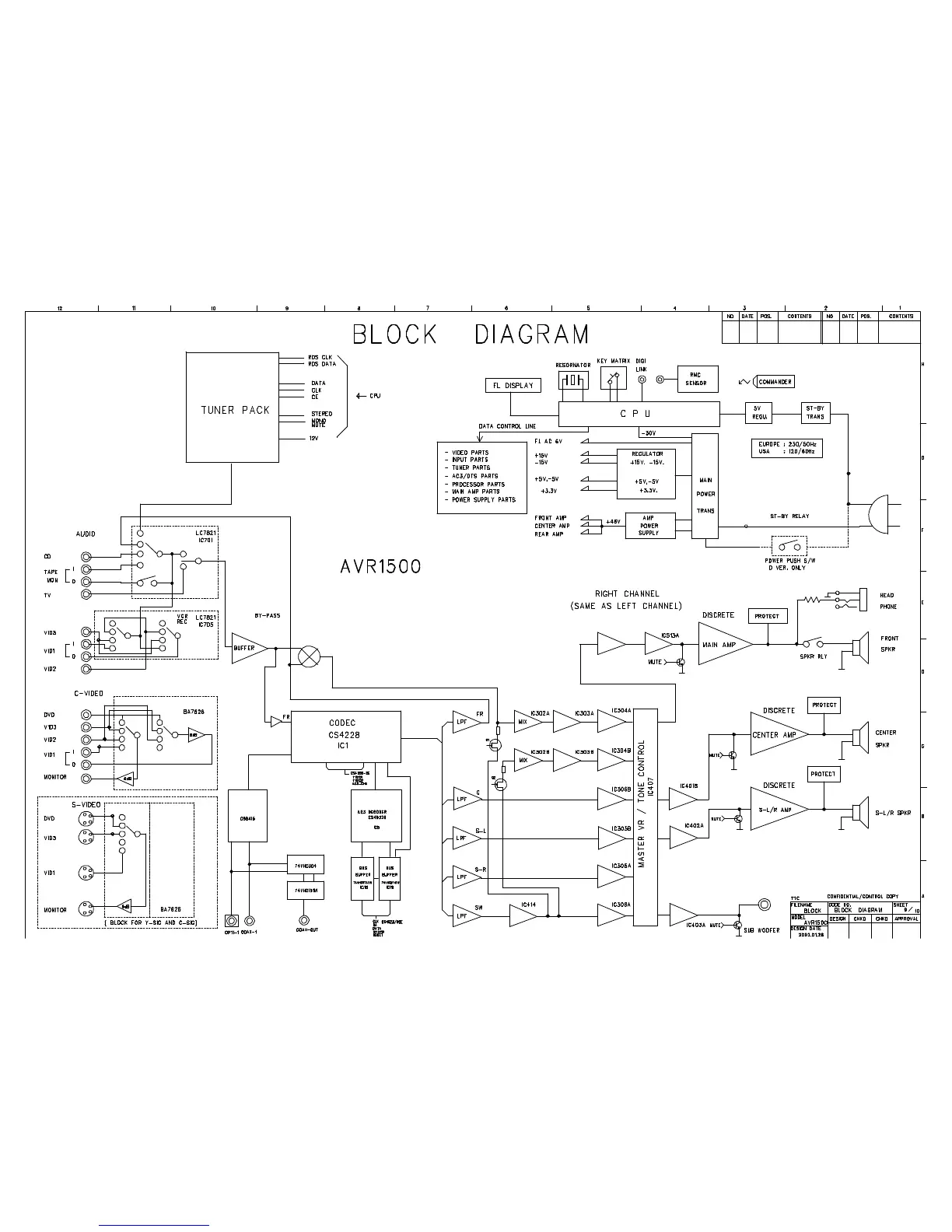 Harman Kardon AVR 1500 - Block Diagram; System Architecture