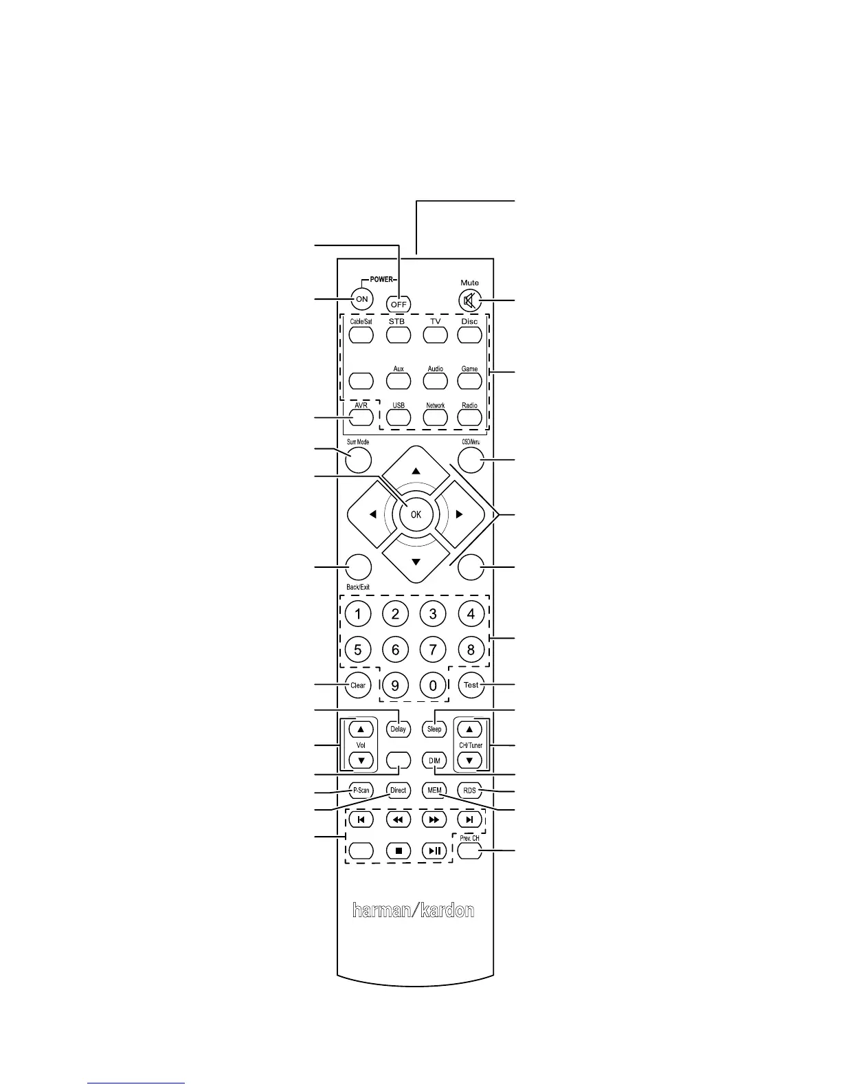 Harman Kardon AVR 1510S - Funzioni del Telecomando Dellimpianto