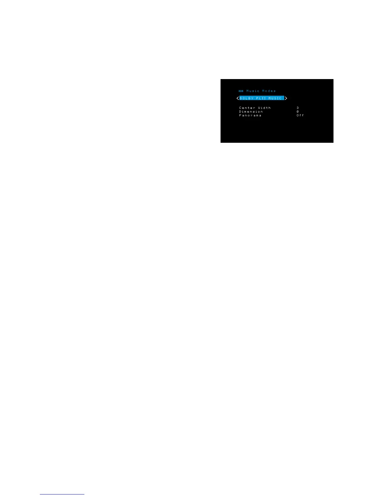 • Music (Musica): Logic 7 Music, DTS Neo:6 Music, Dolby Pro Logic II Music.