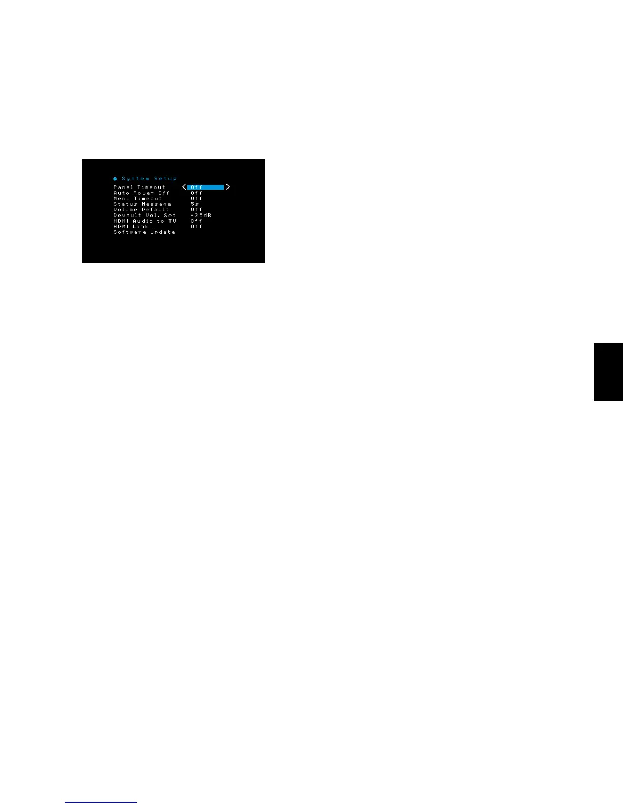 il funzionamento dell’AVR. Premere il tasto OSD/Menu e navigare fino alla riga System