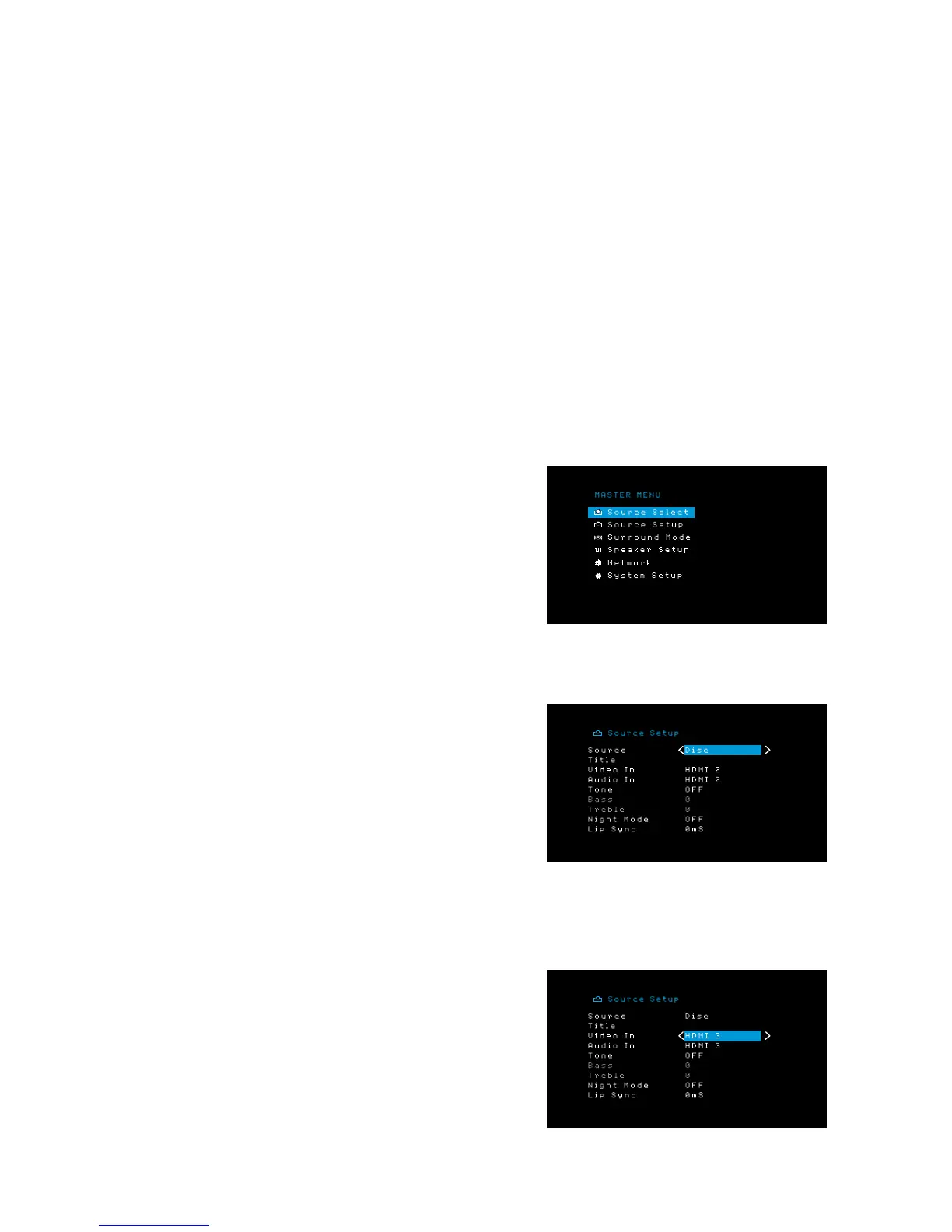 Le menu Source Setup (Configuration de la source) vous permet d'affecter les connexions
