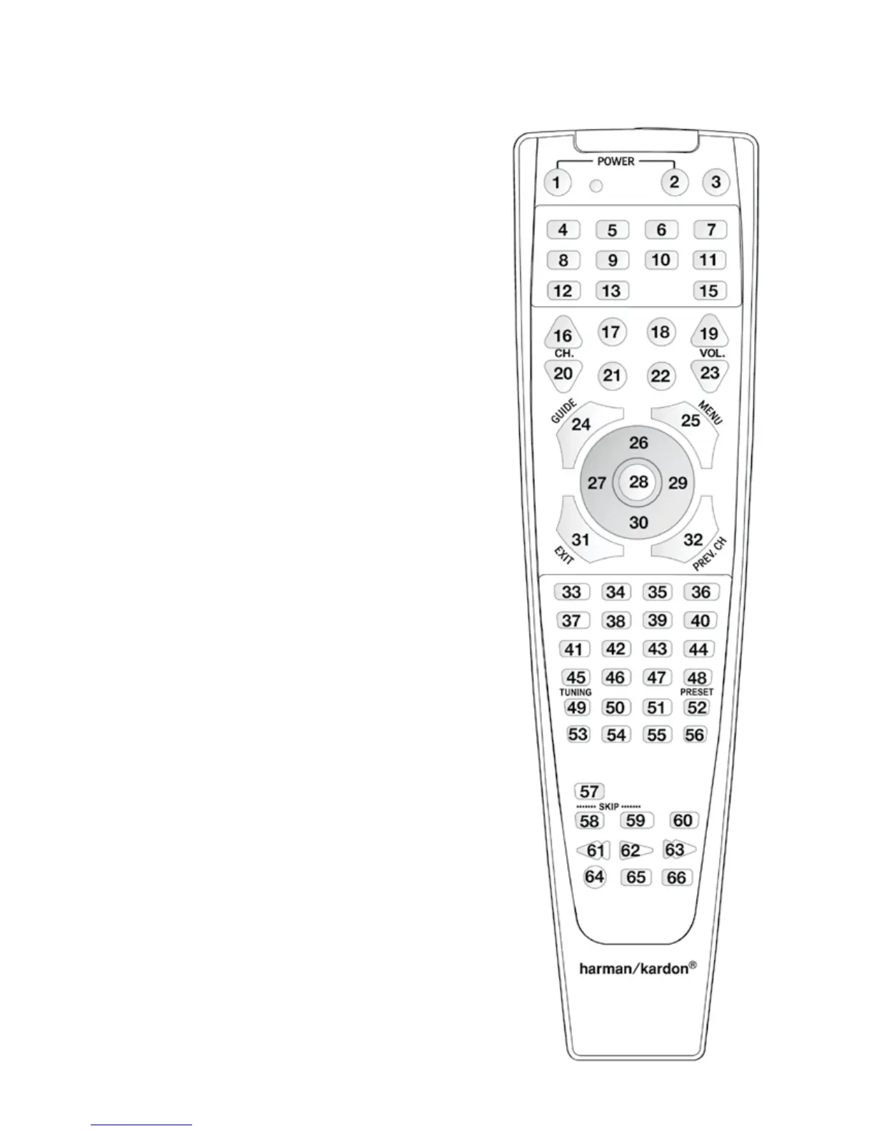 Harman Kardon AVR 1565 - Appendix: Remote Control Button Reference; Numbered Remote Control Buttons Guide