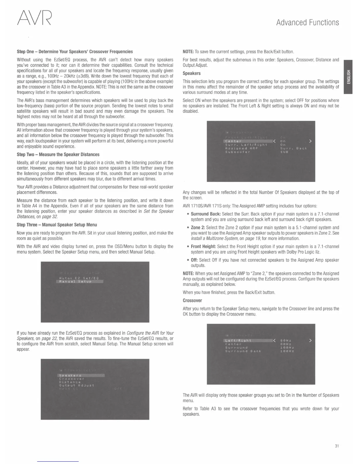 Harman Kardon AVR 161S - Manual Speaker Configuration; Determining Speaker Crossover Frequencies; Manual Speaker Setup Menu