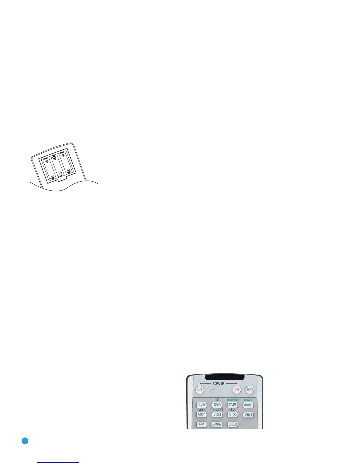 The AVR 247 remote control uses three AAA batteries, which are included.