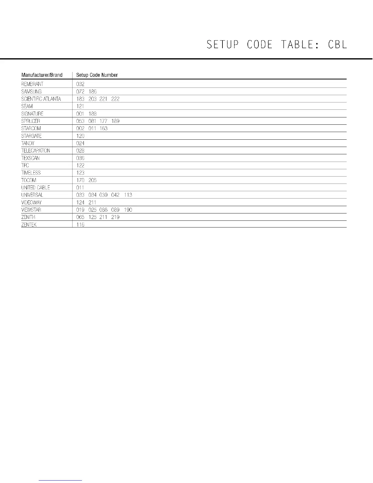 Manufacturer/BrandSetupCodeNumber