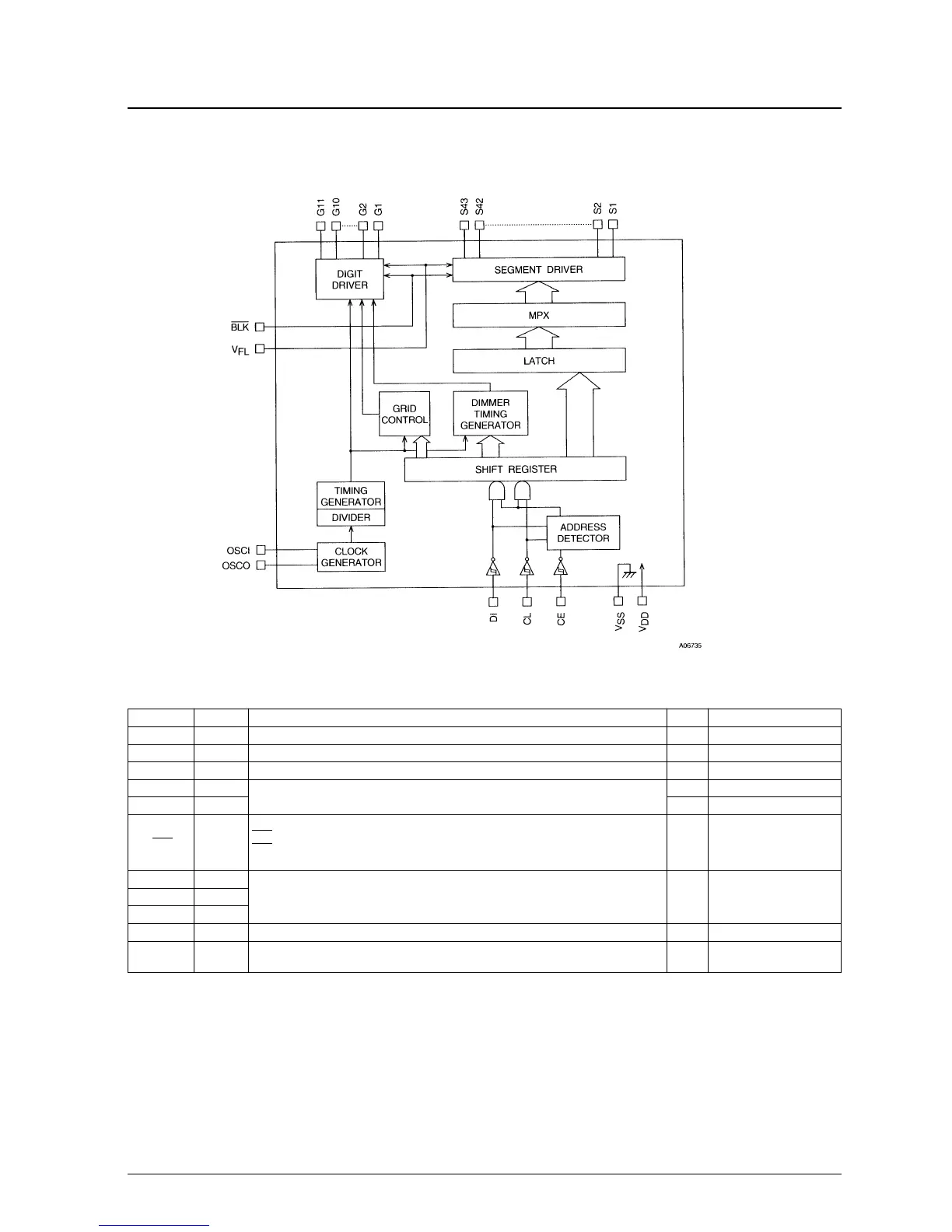 Segment outputs for displaying the display data transferred by serial data input. These pins