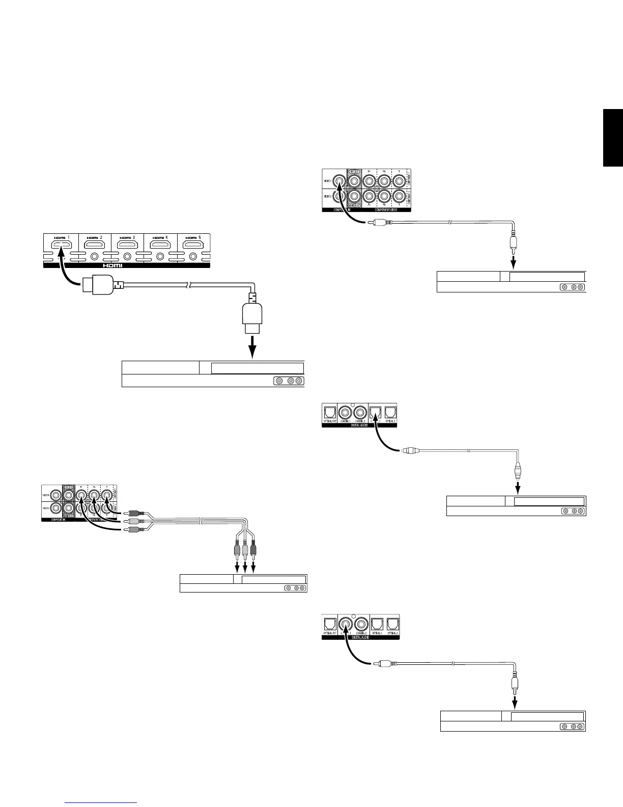 digital audio connectors. NOTE: Make only one type of digital connection (HDMI, optical or coaxial)