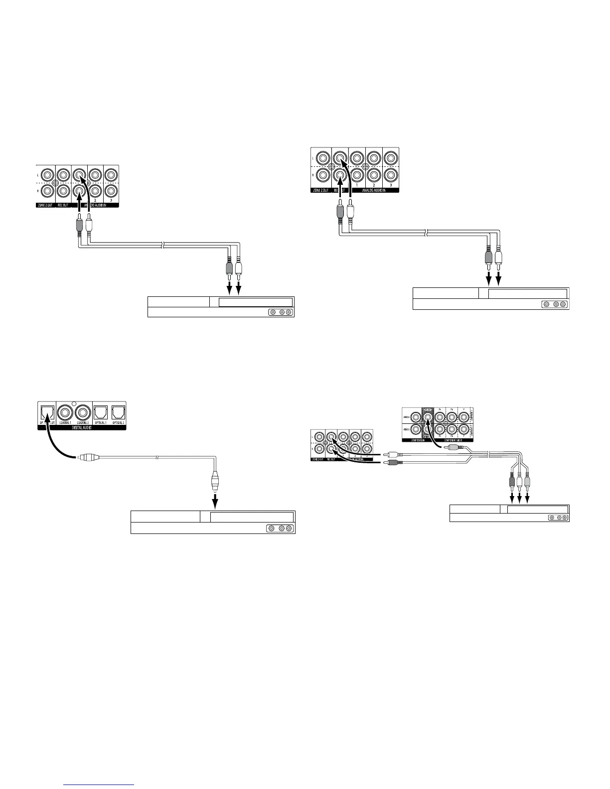 source device, connect the receiver’s analog audio Rec Out connectors to the analog video recorder’s