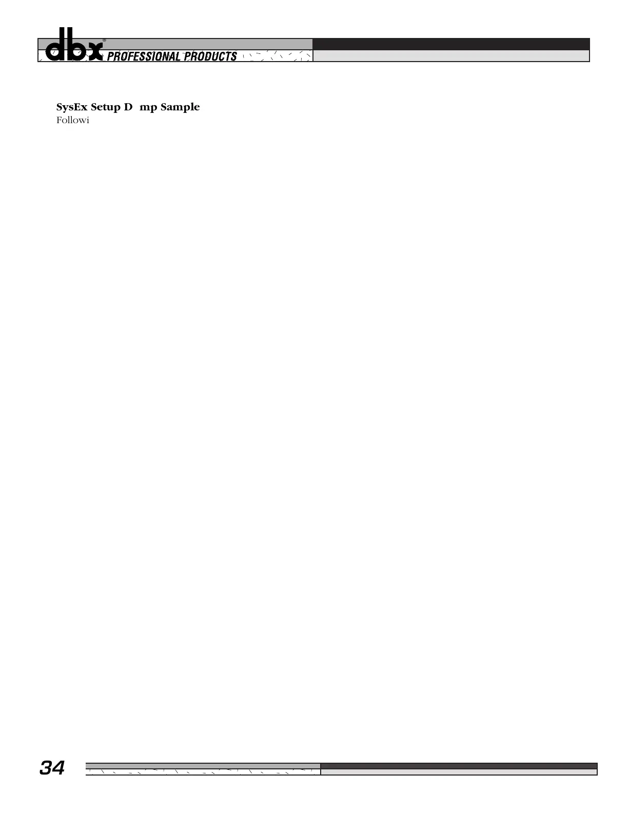 Following is a simple example of a SysEx Setup dump. It takes you set by step through all of the operation com-
