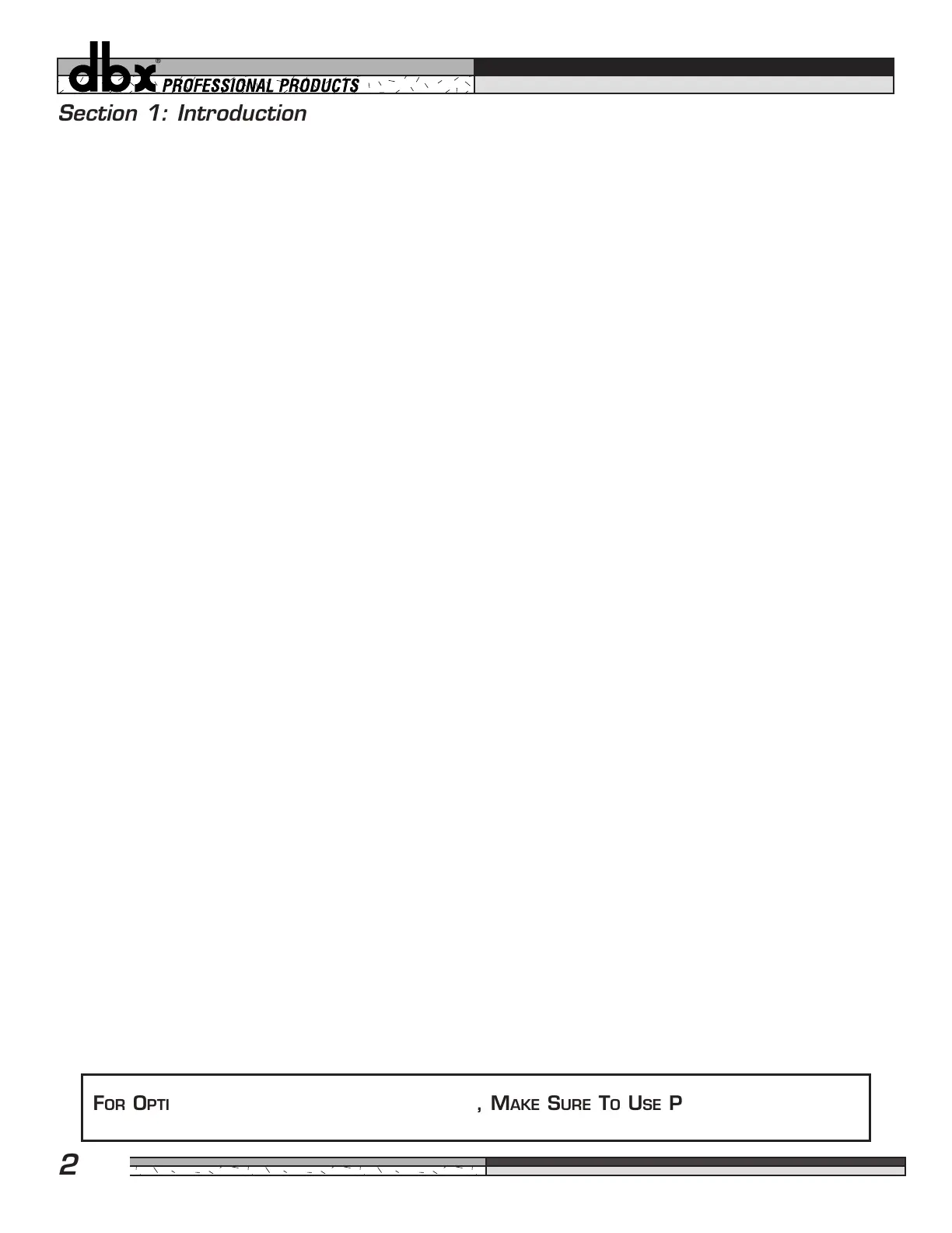 Congratulations on your purchase of the dbx DDP Digital Dynamics Processor. For over 25 years dbx has been