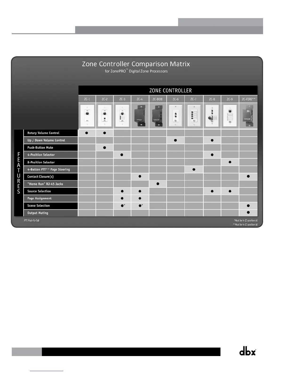The below matrix table shows a side-by-side comparison of the ZC’s features.