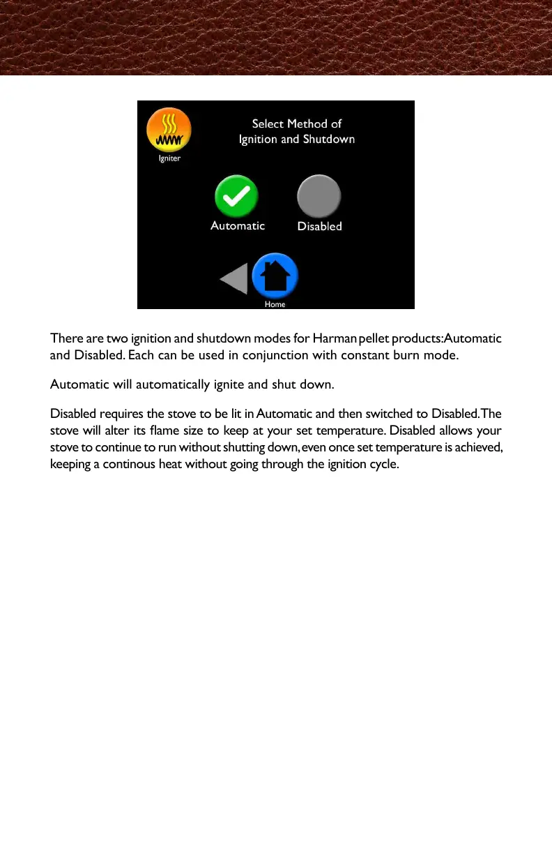 Disabled requires the stove to be lit in Automatic and then switched to Disabled. The